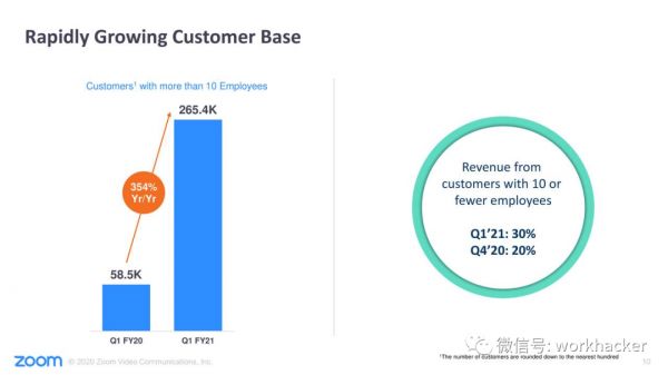 其中拥有10名以下员工的客户占第一季度收入的30%,比第四季度的20%提高了10%。