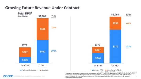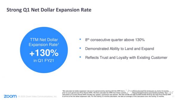 事实上,消费者或者小企业客户的涌入,甚至改变了Zoom的计费组合。因为这些客户通常按月付款,而不是像大多数企业客户那样按年付款。
