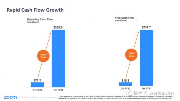 截至2020年4月30日,Zoom持有的现金、现金等价物和有价证券总额为11亿美元。