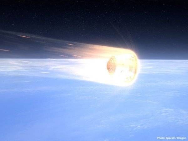 龙飞船进入大气层时的状况,耐高温材料PICA-X保护着龙飞船(概念图)。