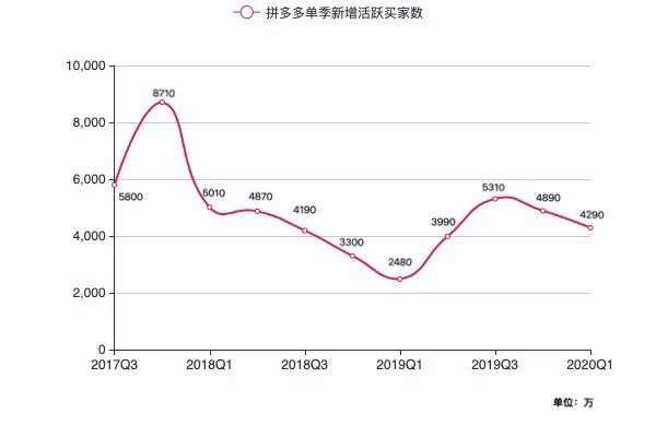 这导致2017年Q4拼多多出现第一次增长峰值。当季,拼多多净增活跃买家数8710万,总用户数达到2.448亿。
