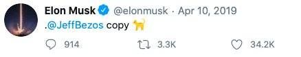 作为流量担当,发火箭和卫星的档口还不忘怒怼科技大佬。这一回回归推特的原因是为了讽刺亚马逊CEO贝索斯。