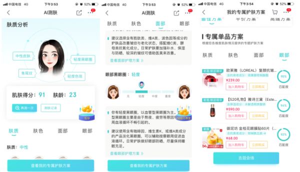 一位美妆从业者告诉36氪,皮肤问题其实很复杂,光黑眼圈就有结构型、色素型、血管型三种,各自对应不同的解决方案,AI测肤是相对简单、高效的选择。