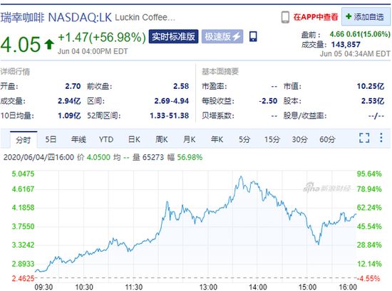 瑞幸咖啡盘前涨超13% 自复盘股价上涨了296.4%