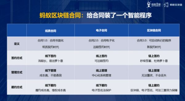 5月18日,蚂蚁区块链又面向中小企业推出了新产品——区块链合同服务,全面开启链签约时代,合同签署后无法被篡改、也不会丢失。