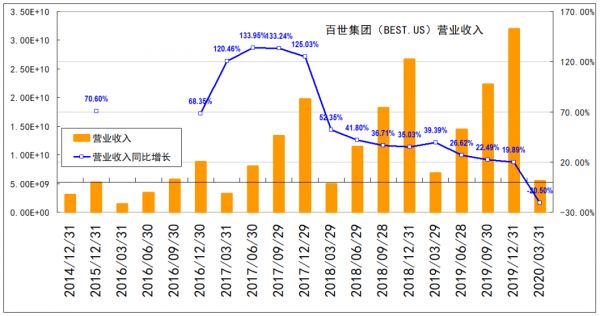近日,快递物流公司百世集团(BEST.US)披露了2020年Q1财报。