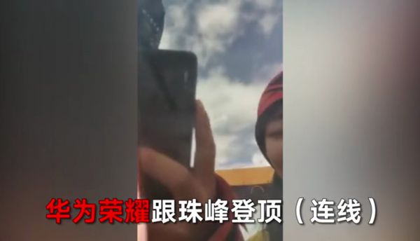 中国登山队员在珠峰峰顶打出人类第一通 5G 电话。图片来源:华为荣耀