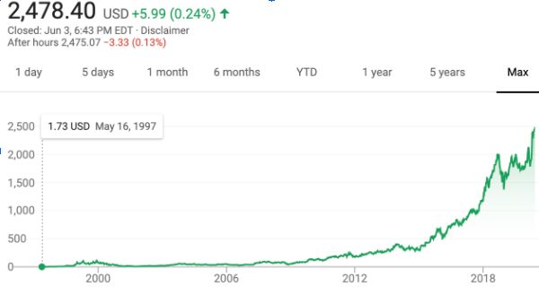 亚马逊 1997年到现在的股价波动,图片来自互联网