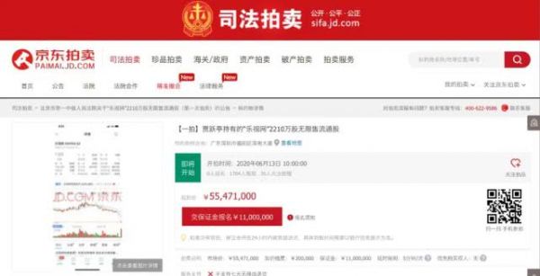 贾跃亭持有的乐视网股票将被拍卖 图片来源:京东拍卖截图