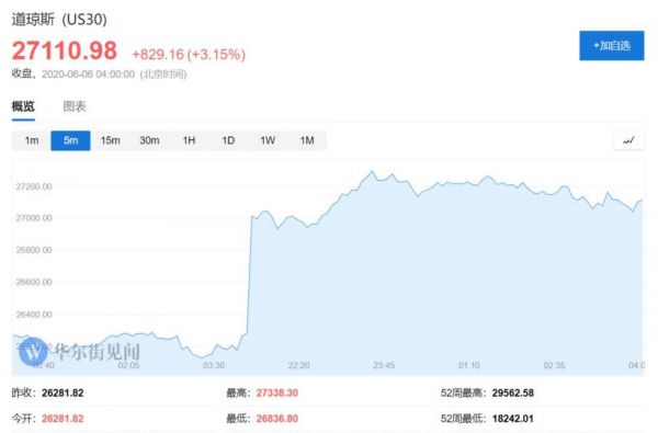 数据过后,美股暴涨。三大股指集体收涨,道指自3月4日以来首次收于27000点上方,创2月24日以来收盘新高;标普500指数收涨2.62%;纳指盘中创历史新高。