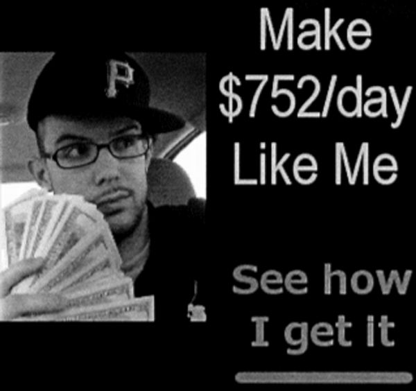 这种事情也会发生在男士身上,卷入其中的还是全球最大的色情网站 Pornhub。美国小伙 Edward Kelly 一张拿着十几张美钞、头戴帽子的自拍照就被 Pornhub 用作了广告,广告语是「像我一样每天挣725美元,看我是怎么做到的。」
