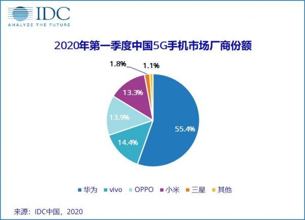 IDC 指出,在中国 5G 市场,华为依旧占据半数以上份额,但随着众多头部厂商面向各价位段、不同产品定位的 5G 手机陆续进入市场,二至四名也已占据了超过 40% 的市场,且互相之间的竞争日趋激烈。