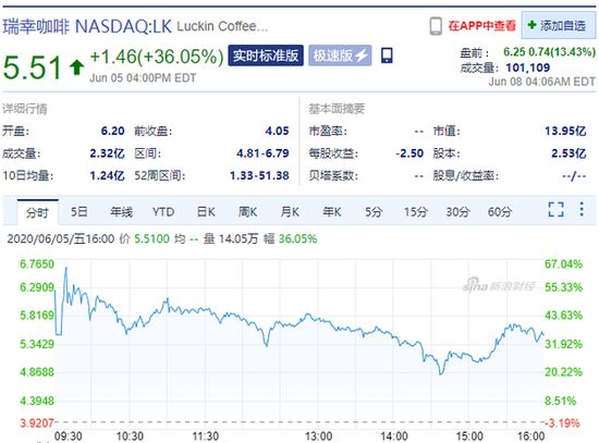 瑞幸咖啡盘前涨超13% 自复盘股价上涨了296.4%