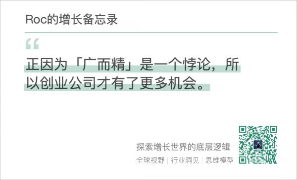 正因为「广而精」是一个悖论,所以创业公司才有了更多机会。