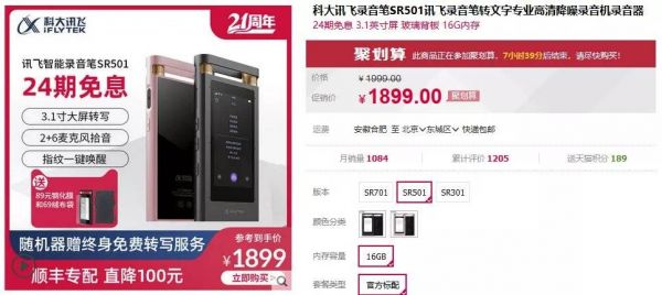 [2] 讯飞商城,智能录音笔SR701
