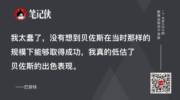 巴菲特曾经懊悔地说:“我太蠢了,没有想到贝佐斯在当时那样的规模下能够取得成功,我真的低估了贝佐斯的出色表现。”