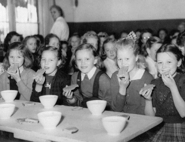 1952年,奥斯陆一个小学的学生正在吃早餐。图片来源:wikipedia