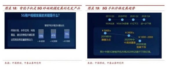 根据中国移动和中泰证券研究所给出的预测,当 5G 智能手机价格大于 4000 元时,占据的市场份额仅能达到 15%;如果是 2000 元阶段时,份额则会提升到 41%,依旧未过半。