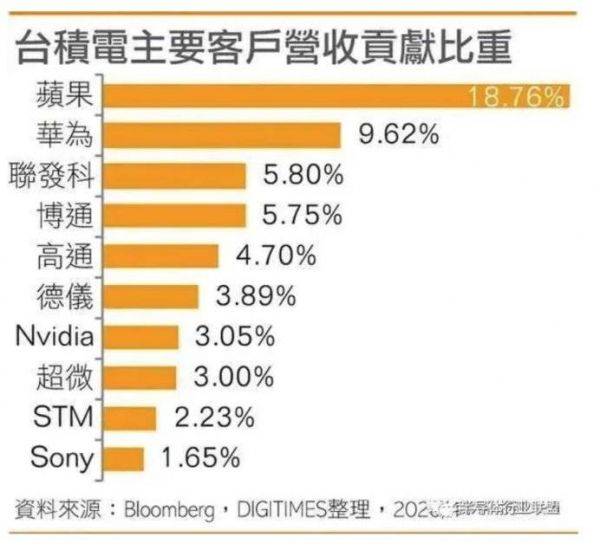 台积电主要客户营收贡献比重