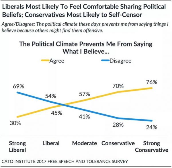 一项调查显示:71%的美国人表示,“政治正确”限制了他们公开讨论的欲望,因为他们害怕发表“政治不正确”言论会影响到他们的正常生活。