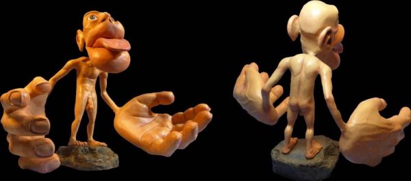 这个小人展示了负责不同身体部位感觉处理的大脑部位的相对比例。注意占比尤其大的手和面部。—Wikimedia Commons