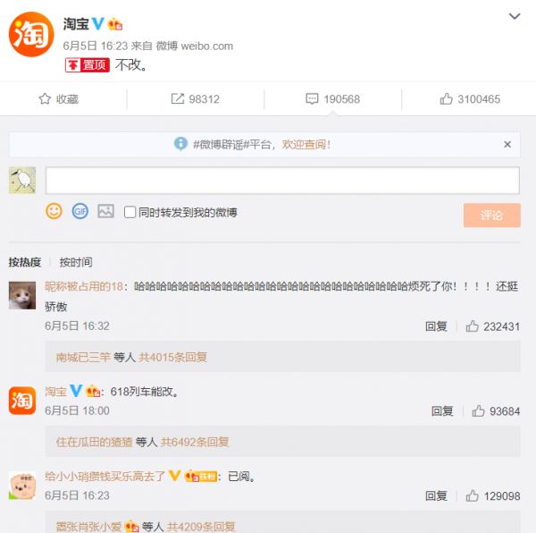 随着微信新功能越来越多、涉及的场景越来越丰富,两大巨头之间的直接对话已不可避免。不久前微信宣布微信号可修改引来热议,当时淘宝回应了一句“不改”从而迅速登上热搜榜,这两大巨头仍是互不关心吗?似乎未必。