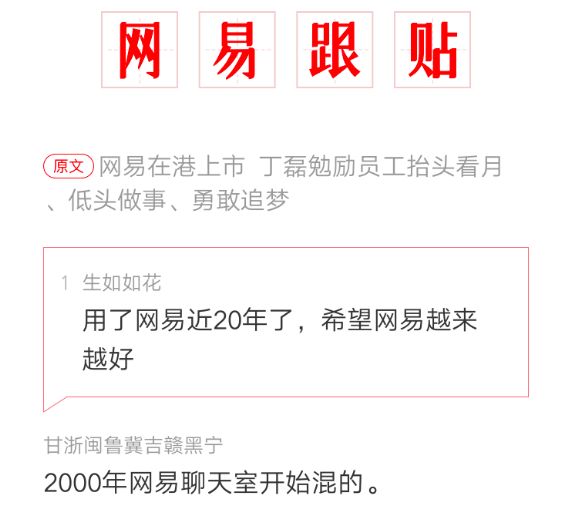 网易20年来始终坚持的精品战略,在网易新闻中得到极致体现。比如网易新闻“有态度”以及跟贴文化,至今仍是同类产品中无人超越的特色。