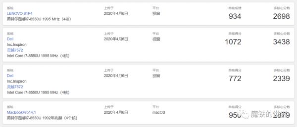 从Geekbench跑分数据看,两年前发布的A12X芯片单双核性能超过低压版8代酷睿i7。