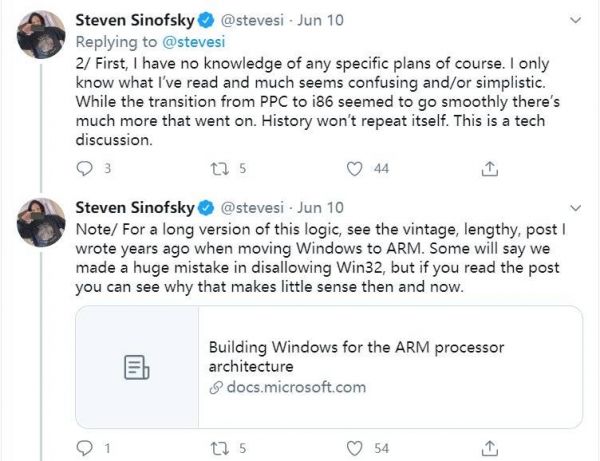 Twitter 博主 Steven Sinofsky 连发 28 条信息,探讨从 PowerPC 到 x86,与 x86 到 ARM 架构的难度异同,以及对苹果开发者生态的影响。