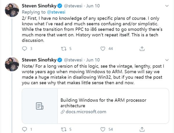 Twitter 博主 Steven Sinofsky 连发 28 条信息,探讨从 PowerPC 到 x86,与 x86 到 ARM 架构的难度异同,以及对苹果开发者生态的影响。