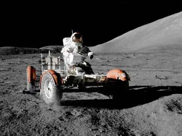 1972年12月11日,阿波罗17号任务指挥官尤金·塞尔南在月球表面驾驶月球车