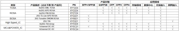 据网站信息显示,「芯耘光电」其主要产品包括光器件、电芯片、电源及控制芯片等。其中光器件包括多款10~40km传输距离的四通道100Gb/s和20~60km传输距离的单通道25Gb/s的光器件组件;电芯片包括25G TIA、4x25G TIA Array和MZM驱动芯片;电源及控制芯片有1CH DCDC和4CH DCDC。目前,产品应用于25G /100G的传输、5G前传接入、数据中心和CMTS等领域。