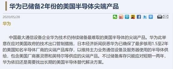 而根据日经中文网5月28日的报道,其从自己的渠道获悉,华为囤积了1.5年-2年的美国芯片来供给自己的基站和服务器使用。