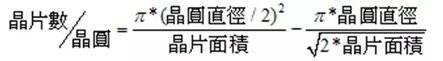 实际产出的芯片数量按照如下公式粗略计算,按照下面的公式计算,一片12英寸的晶圆大约可以产出640颗芯片,注意这只是通用公式算出的理论值,实际生产中晶圆的edge loss还会比这更高,会导致芯片的产出量比640颗还要低。