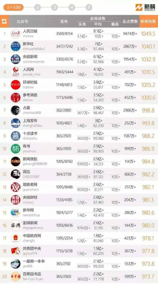 注:榜单数据来源于“新榜”