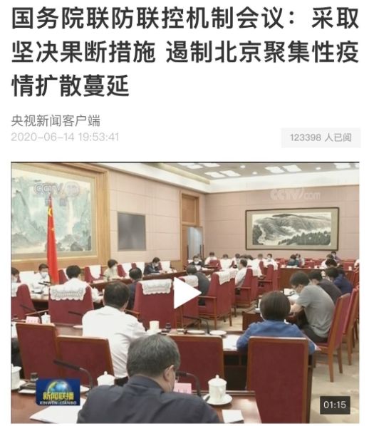 @央视新闻【国务院联防联控机制会议:采取坚决果断措施,遏制北京聚集性疫情扩散蔓延】国务院联防联控机制14日召开会议强调,此次聚集性疫情与新发地农产品批发市场高度关联,市场人员密集、流动性大,要以新发地及周边地区为重点实施最严格的流调,开展深入全面的溯源工作。