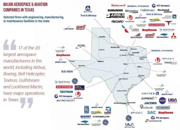 休斯顿——圣安东尼奥——达拉斯-沃斯堡都市区,构成了德州军事工业最集中的“黄金三角”