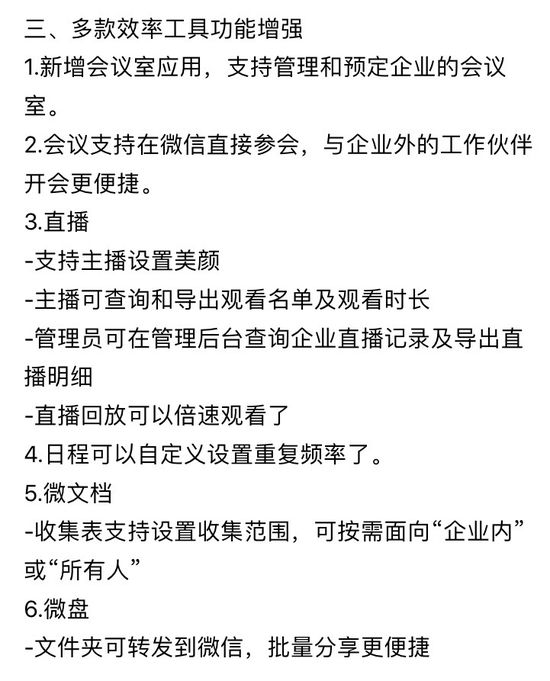 值得一提的是,新版企业微信新增直播美颜功能,供主播使用。同时,主播本人可查看和导出观看名单及时长。另外,直播回放可以倍速观看,方便节省时间。