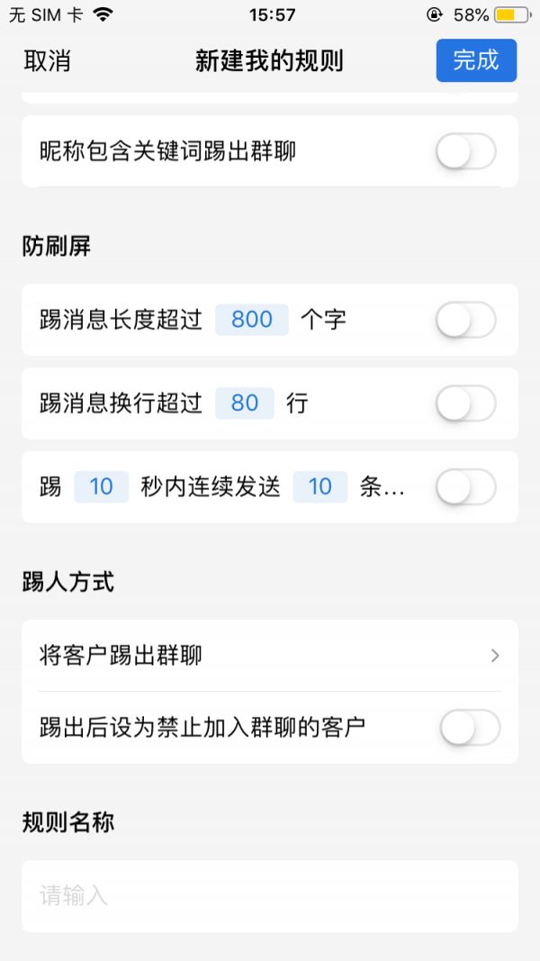 ①踢出群聊:开启后,触犯规则会将客户踢出群聊