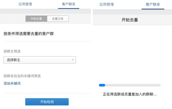在本次3.0.24客户联系能力更新中,企业微信还开放了去除重复群成员的功能。群主可选择多个客户群,筛选出其中重复的群客户,并可将他们从重复的客户群中移出。也可由企业也可统一筛选,由群主确认后移出。