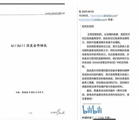 根据双方公开的信息,“巫师财经”于4月15日寄出《bilibli深度合作协议》,时隔一个多月未收到双方签字的合同,又于5月19日发函表示撤回此前的签字效力。6月2日,B站回复了电子版盖公章的合作合同,认为合同已经生效。一方认为合同未生效,一方则认为已经签约完成。