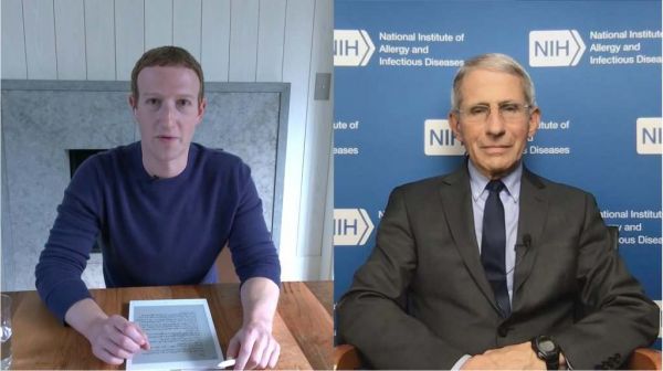 董事会的问题被暂时搁置,扎克伯格将更多注意力投入到新冠病毒上。他很早就开始关注该疾病,提交了包括疾控中心前主任汤姆·弗里登(Tom Frieden)在内的专家的报告。有人建议扎克伯格不要相信新冠病毒已被控制的初步报告,也不要相信特朗普关于病毒不会对美国造成重大影响的那种毫无根据的保证。3月19日,早在许多州禁止外出之前,扎克伯格就在他的个人FB页面上直播了与美国传染病官员安东尼·福奇博士的聊天视频。