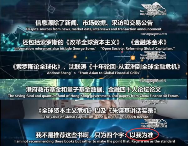 在成名作《香港金融保卫战,国际巨鳄索罗斯做空英镑泰铢,决战香港》中,巫师财经有一段类似表述:“中西方媒体的倾向性都很明显——双方都不客观,对于任何数据和资料,我必须找到第三方来佐证。信息源除了新闻、市场数据、采访和交易公告,还包括索罗斯的《改革全球资本主义》、《金融炼金术》……我不是推荐这些书啊,只为四个字:以我为准。”
