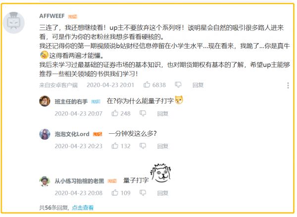 平台支持的作用被略过了,从声明看,巫师财经的蹿红似乎是因内容优质自然发酵的结果。但网友仍然送给B站一个绰号,叫UP主新手村,意为从零培养优秀作者,等到其创作成熟时,再跳槽其它平台。