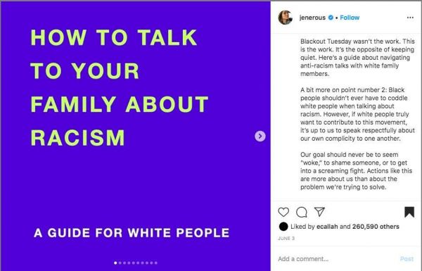 ● Instagram上有关“如何和家人讨论种族偏见”的帖子 / 网页截图