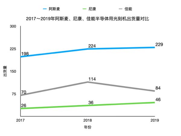 ▲阿斯麦、尼康、佳能出货量对比