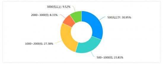 另外如下图所示,人们对智能手环的价格期待明显宽松一些,不过能接受2000~3000元高端智能手表的人群占比依然只有8.33%。占比最多的还是期望可以买到500元以下低价智能手表,达到30.95%,期望价格在500~1000元的人群占比23.81%。