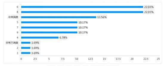 在价格满意度评分上五分以上的评分者超过50%,平均分为6.9分,净推荐值(NPS)为15.25%,说明用户在价格方面的满意程度非常高,而且有很大的可能性会因为价格将产品推荐给其他人。