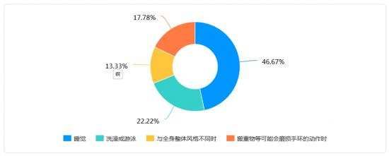 智能相对论的调查显示,46.67%的用户在睡觉时候会摘下自己的手环(手表),基本占一半。