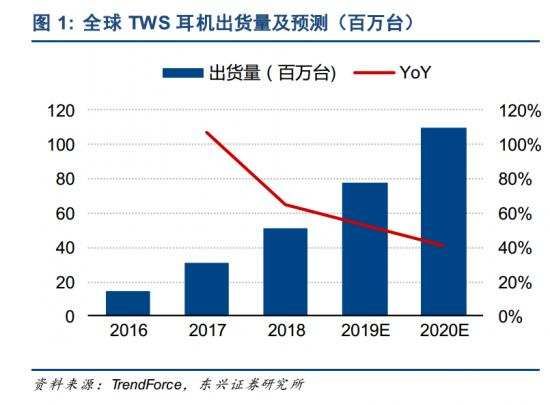 在本年的智能穿戴市场上,有一个单品表现很亮眼——真无线耳机(TWS),一路上扬的出货量严重威胁到了有线耳机。